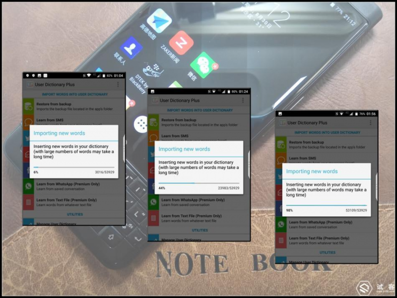 无奈之下只好参考网上的教程,自己动手,把百度输入法字库(5万多条)通过电脑导出,用Excel表格转换成相应格式,通过专门软件导入到Keyone的个人字典上,来解决这个问题,导入过程整整花了一个小时。